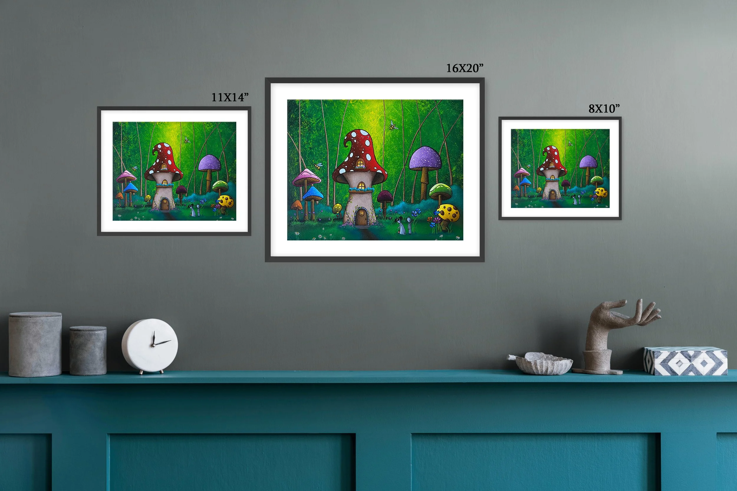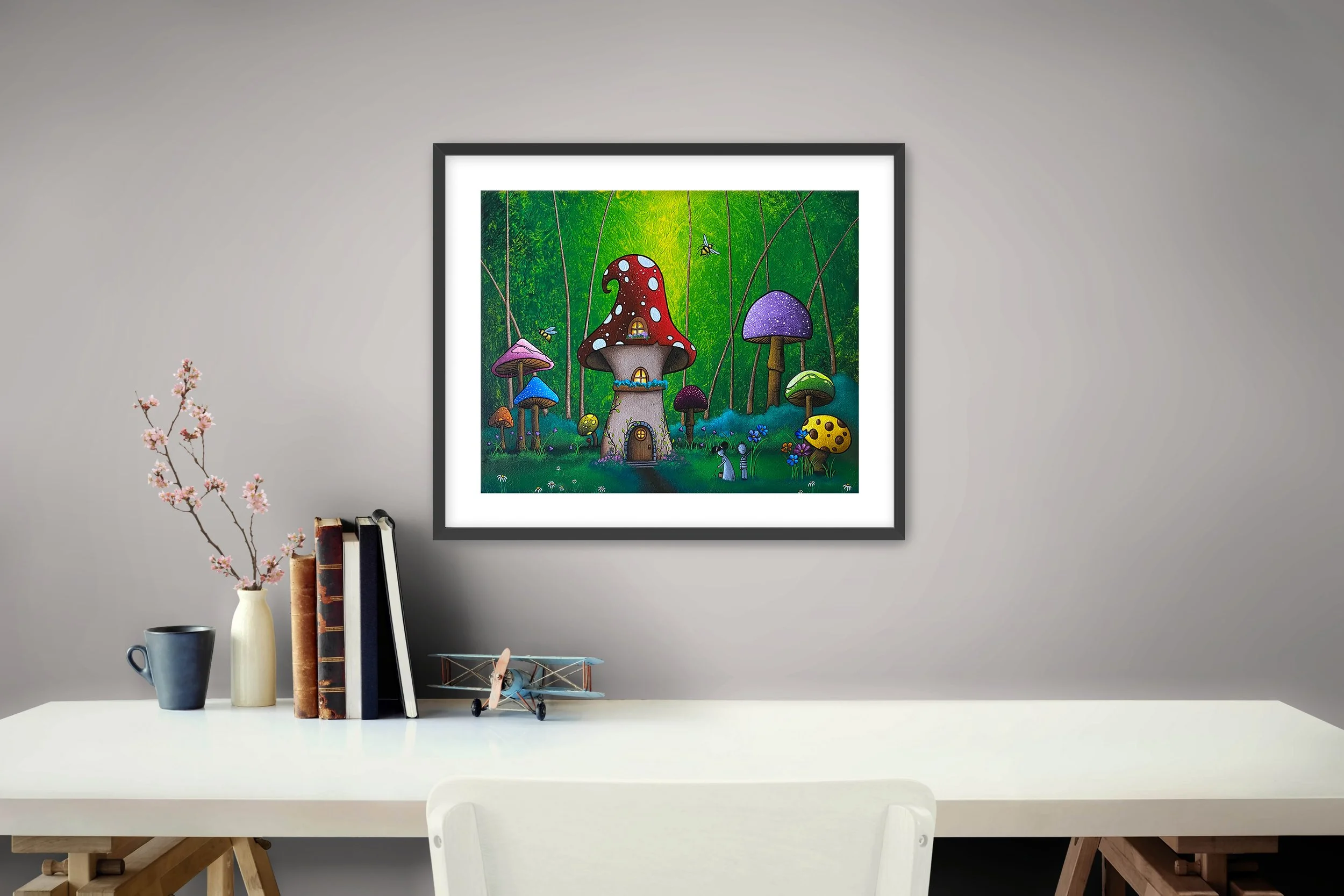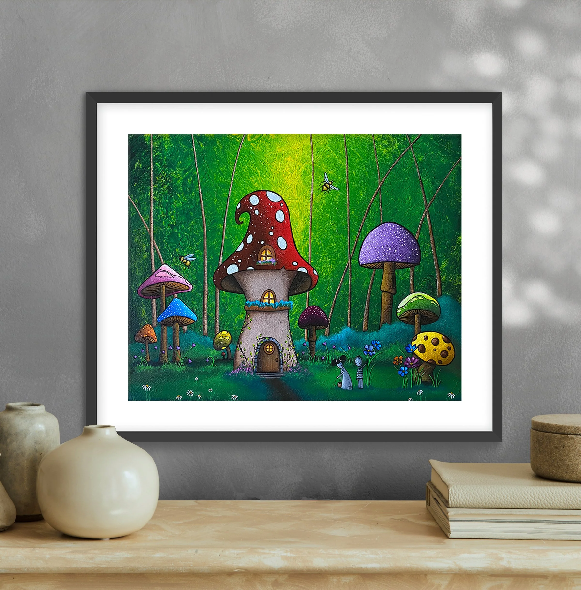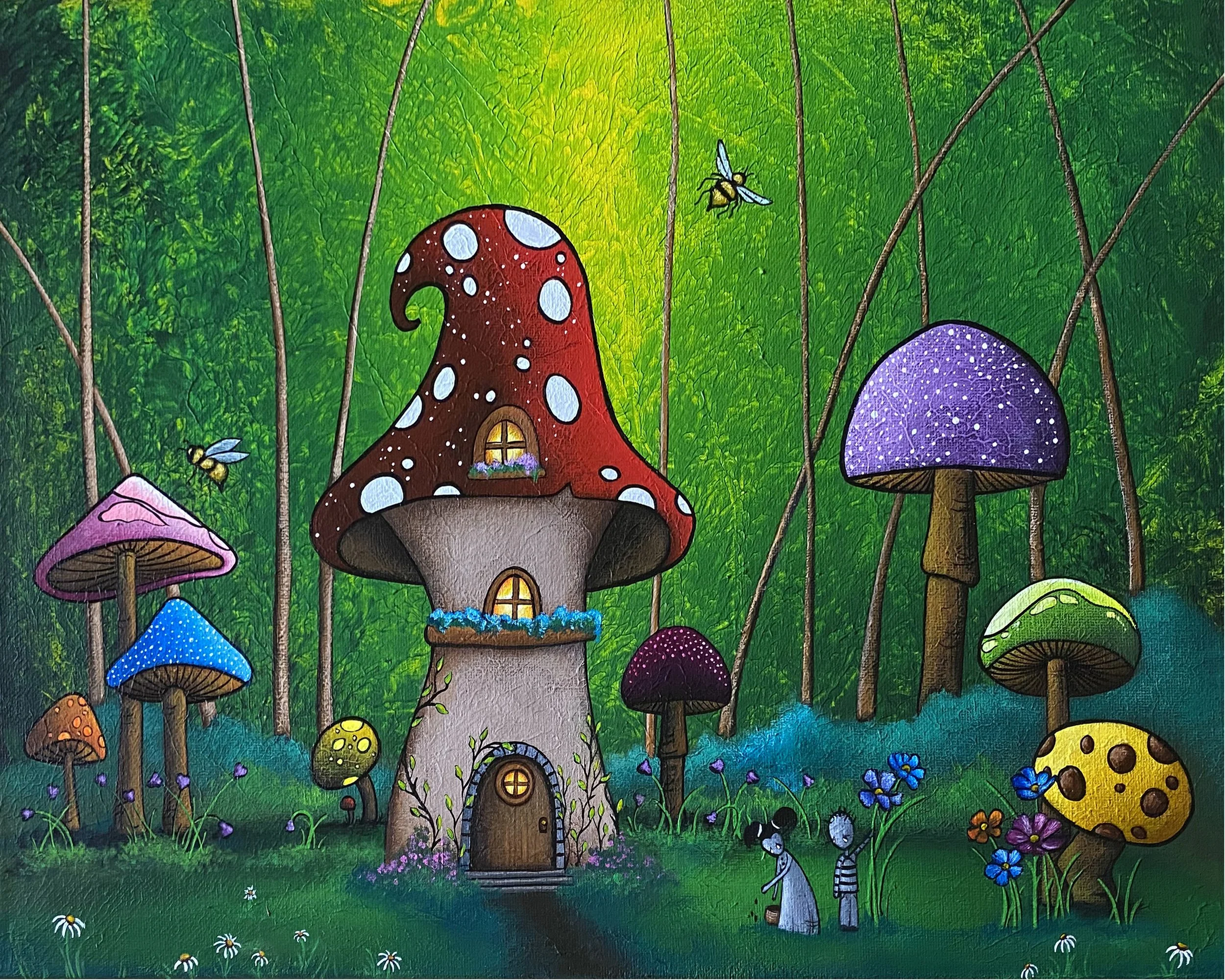 This vibrant, semi-gloss print of Jaime’s original painting "Home in Wonderland", is printed on archival grade, acid-free luster paper, with fade resistant inks. The print is centered on the paper with a 0.25" white border for ease of framing (Frame Not Included).