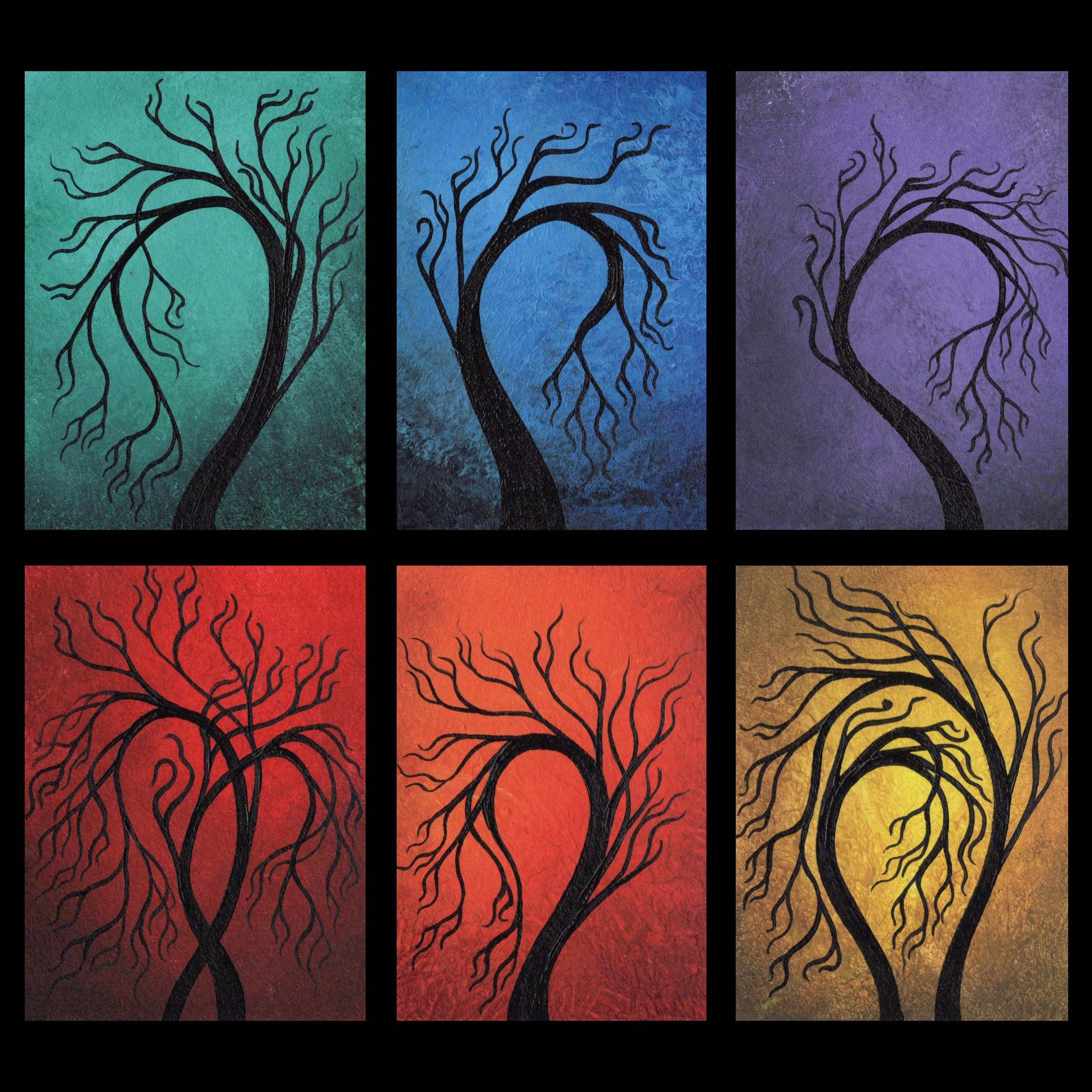 This is a set of six Original, One of a Kind ACEO Paintings. hand-painted by me (Jaime Best). These miniature paintings each measure 2.5 X 3.5 inches and were done using fine acrylic paints on watercolor paper. Each comes signed and dated on the back.